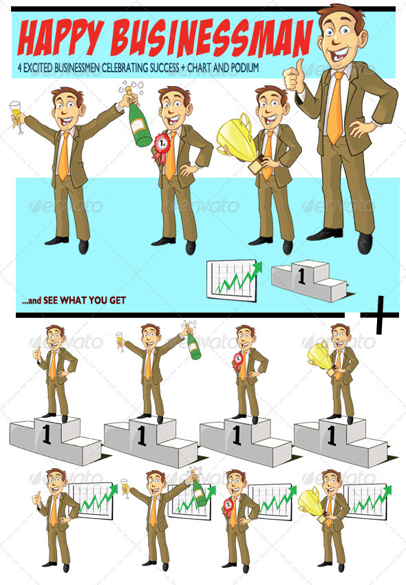 Download Best Seller “Happy Businessman” from GraphicRiver for category “people”. Related Tags: businessman, cartoon, celebration, champagne, character, characters, happy, logo, manager, mascot, people, ribbon, silverware, success, successful, thumb up, trophy, web